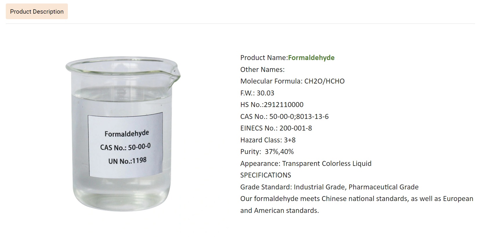 | Assay | 37%Min | 40%Min |